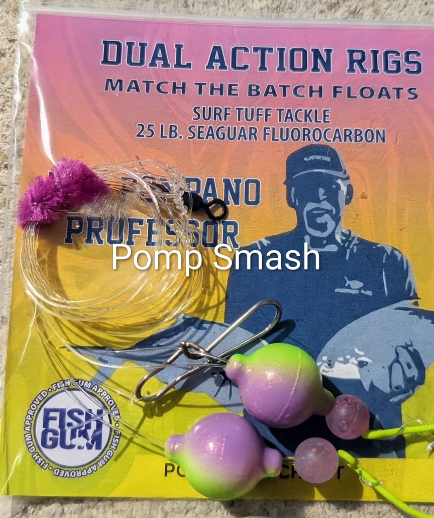 The Perfect Match Because even fish have a type. Match the Batch Floats. Bloop Company roe beads.. Surf Tuff Tackle. 25 lb Seaguar.